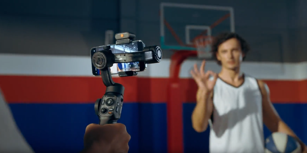 La unidad de seguimiento con IA se monta magnéticamente en la abrazadera para el teléfono. Cuenta con su propia cámara dedicada a reconocer gestos y controlar el gimbal para mantener al sujeto a cuadro. El además de seguir al sujeto mantiene el encuadre y lo enfoca. Esta tecnología permite el seguimiento automático del objetivo, sin necesidad de conectarse a una aplicación externa.