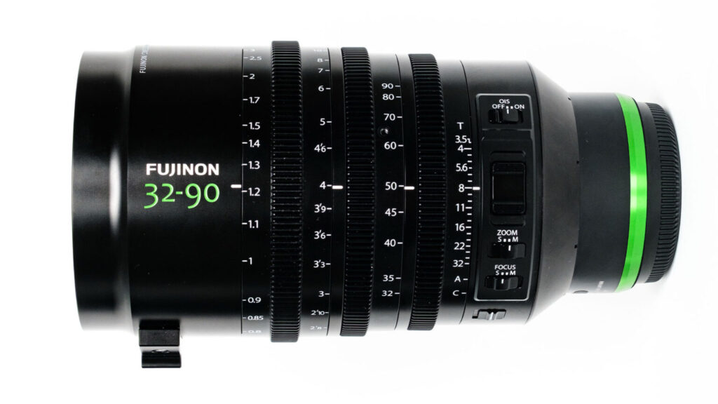 También vemos las siglas OIS en el lente lo que nos dice que cuenta con estabilizador óptico, lo que no es muy común en lentes de cine, pero una función que Fujinon está acostumbrado a usar en sus lentes de televisión, además me parece que puede ser bastante útil al trabajar con la GFX ETERNA 55 y en general con cámaras de cine que no tienen un sensor estabilizado (la mayoría del mercado).