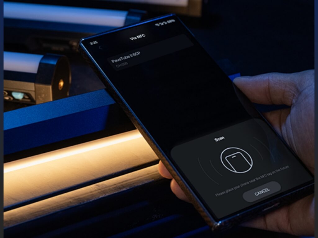 NANLITE ha rediseñado la interfaz de usuario con una disposición de botones y una estructura de menús optimizadas para un manejo más intuitivo del dispositivo. El PavoTube II 6CP también se puede controlar mediante la aplicación NANLINK 2.0, cuenta con NFC integrado que permite emparejarlo rápidamente con solo acercar tu smartphone o tablet compatible a la etiqueta NFC del dispositivo.