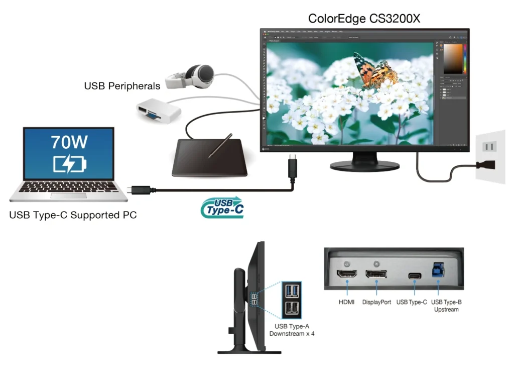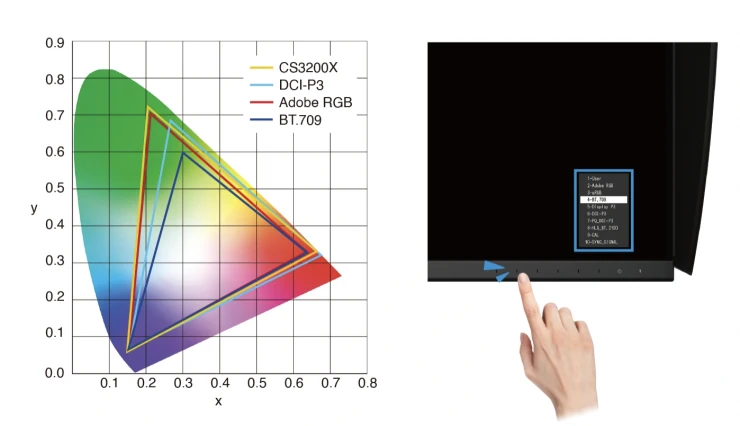 El CS3200X es el primer modelo 4K de 31.5 pulgadas de la serie ColorEdge CS, y la pantalla tiene una resolución de 3840 x 2160 en cuanto a color tiene una cobertura del 99 % de Adobe RGB y del 96 % de DCI-P3. Eizo menciona que el brillo es de 350 cd/m2 y una densidad de píxeles de 140 ppi.