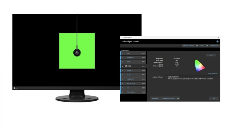 Puede calibrar el monitor con el software de color de Eizo Color Navigator 7, que está diseñado para mantener la precisión cromática en el monitor ColorEdge. También está disponible un sensor de calibración como accesorio opcional para una calibración intuitiva y fiable.