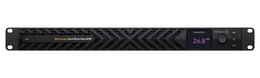 En almacenamiento también hay novedades: el Blackmagic Cloud Store Ultra (desde $8,835 USD con 24 TB) ofrece dos puertos Ethernet de 100 G independientes con soporte para RAID 5, de modo que un puerto puede gestionar la grabación de HyperDeck mientras el otro sirve a las estaciones de edición simultáneamente. El Blackmagic Media Dock Ultra ($2,995 USD) incorpora el mismo diseño de dos puertos Ethernet de 100 G a los Blackmagic Media Modules, el almacenamiento extraíble utilizado en las cámaras URSA Cine, con monitorización del estado HDMI y SDI y sincronización con Blackmagic Cloud.