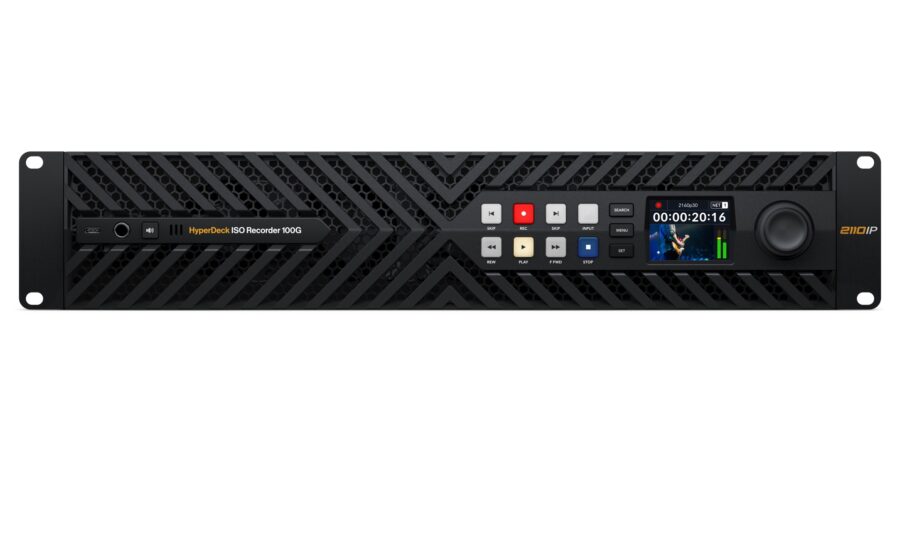 El grabador HyperDeck ISO Recorder 100G ($ 4,995 USD) graba simultáneamente hasta 8 canales de vídeo Apple ProRes Ultra HD usando una conexión Ethernet de 100 Gbps a un almacenamiento en red. DaVinci Resolve puede acceder a los archivos durante la grabación para flujos de trabajo de reproducción en directo. El grabador cuenta con controles de transmisión profesional, incluyendo un dial de búsqueda de metal mecanizado y un embrague activo, conexiones Ethernet de 100 Gbps redundantes duales para vídeo y datos, y control serie RS-422 para automatización de transmisiones tradicionales.