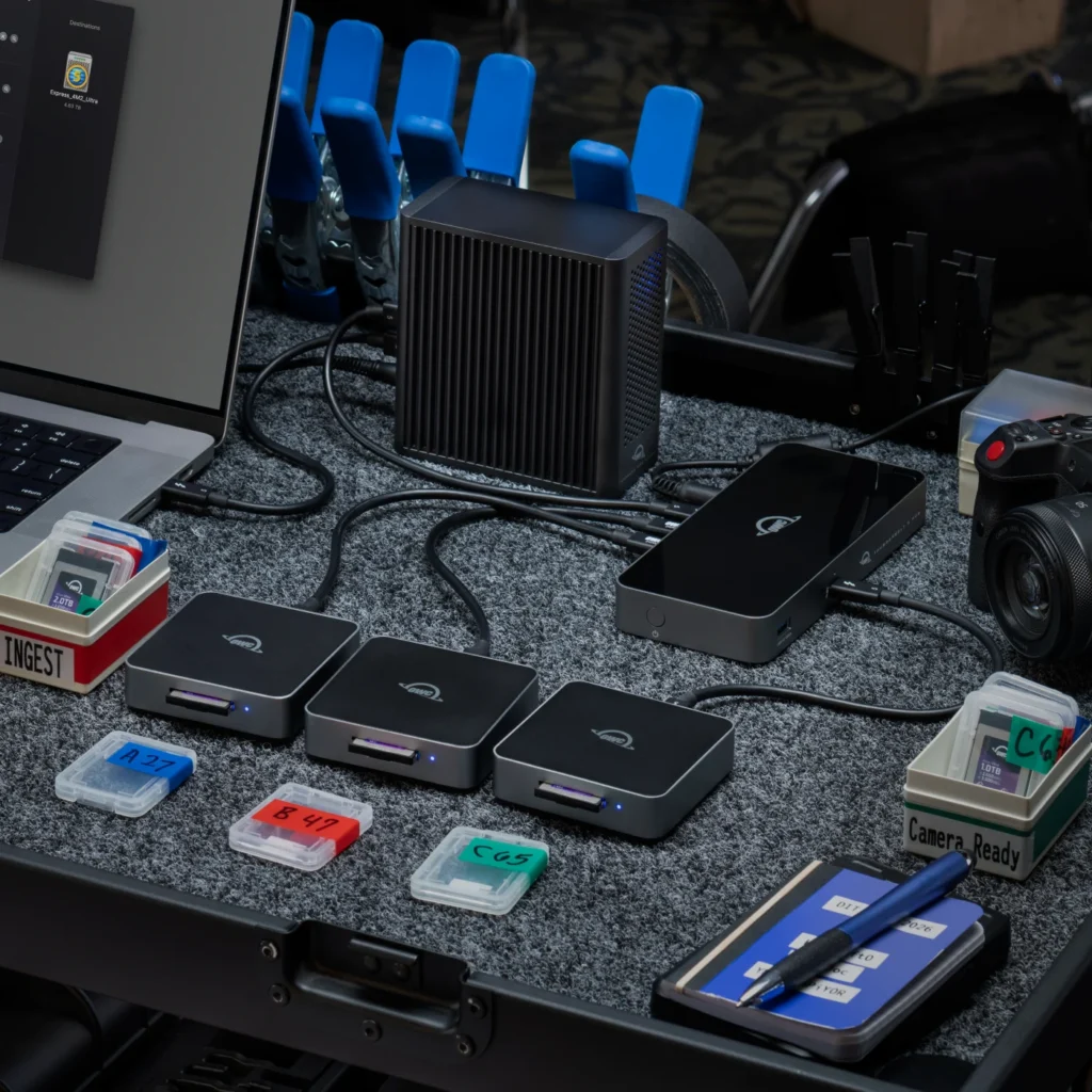 El Express 4M2 Ultra está fabricado con aluminio macizo de grado aeronáutico y cuenta con un ventilador inteligente adaptativo que proporciona una gestión térmica eficaz y silenciosa. Un segundo puerto Thunderbolt 5 permite conectar en cadena hasta cinco dispositivos Thunderbolt adicionales, incluyendo otras carcasas Express 4M2 Ultra que se pueden combinar en un único volumen de alta capacidad. El OWC Express 4M2 Ultra es compatible con Thunderbolt 5, 4, 3 (solo para Mac) y sistemas USB 4.